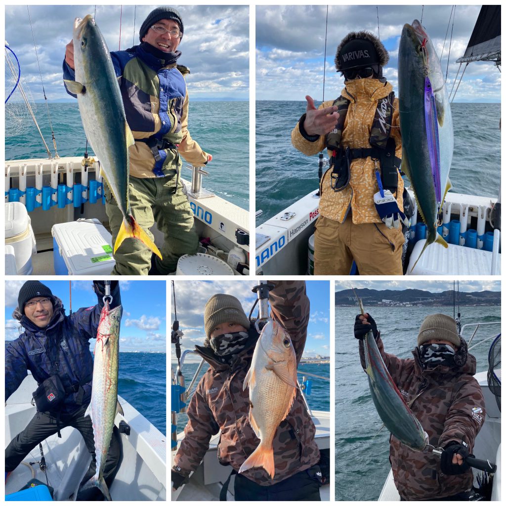 12月15日オーシャン便。 メジロ〜ブリ、サワラ、真鯛。 クーラー満タン😊よく釣れました‼️